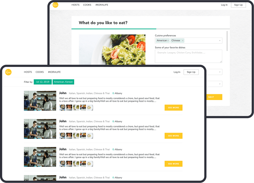 There is a growing desire for homemade meals, but many people lack the time, energy, or skills to cook for themselves. Kora wanted to create a platform where passionate cooks could bring the joy of home cooking to others right in their own kitchens.