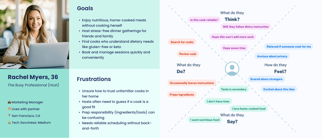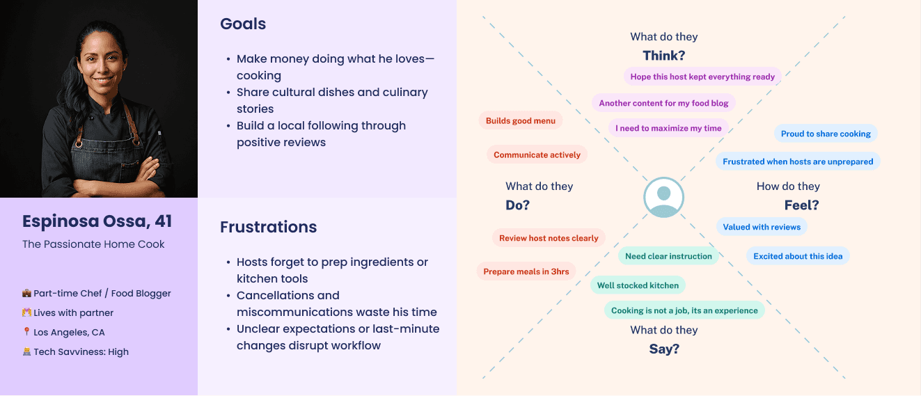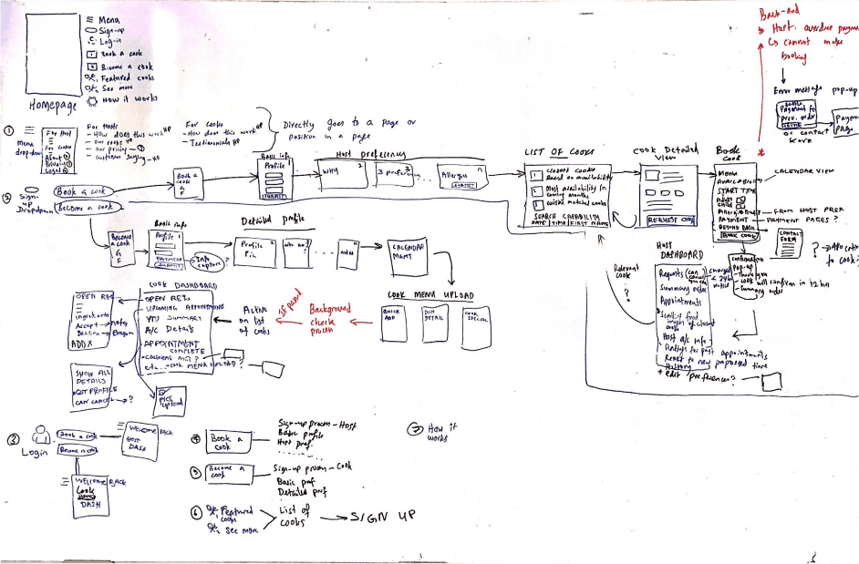 Understand: I began by gathering requirements from the client to deeply understand the needs and expectations of both hosts and cooks. This helped frame the problem space and align the team on key user groups.