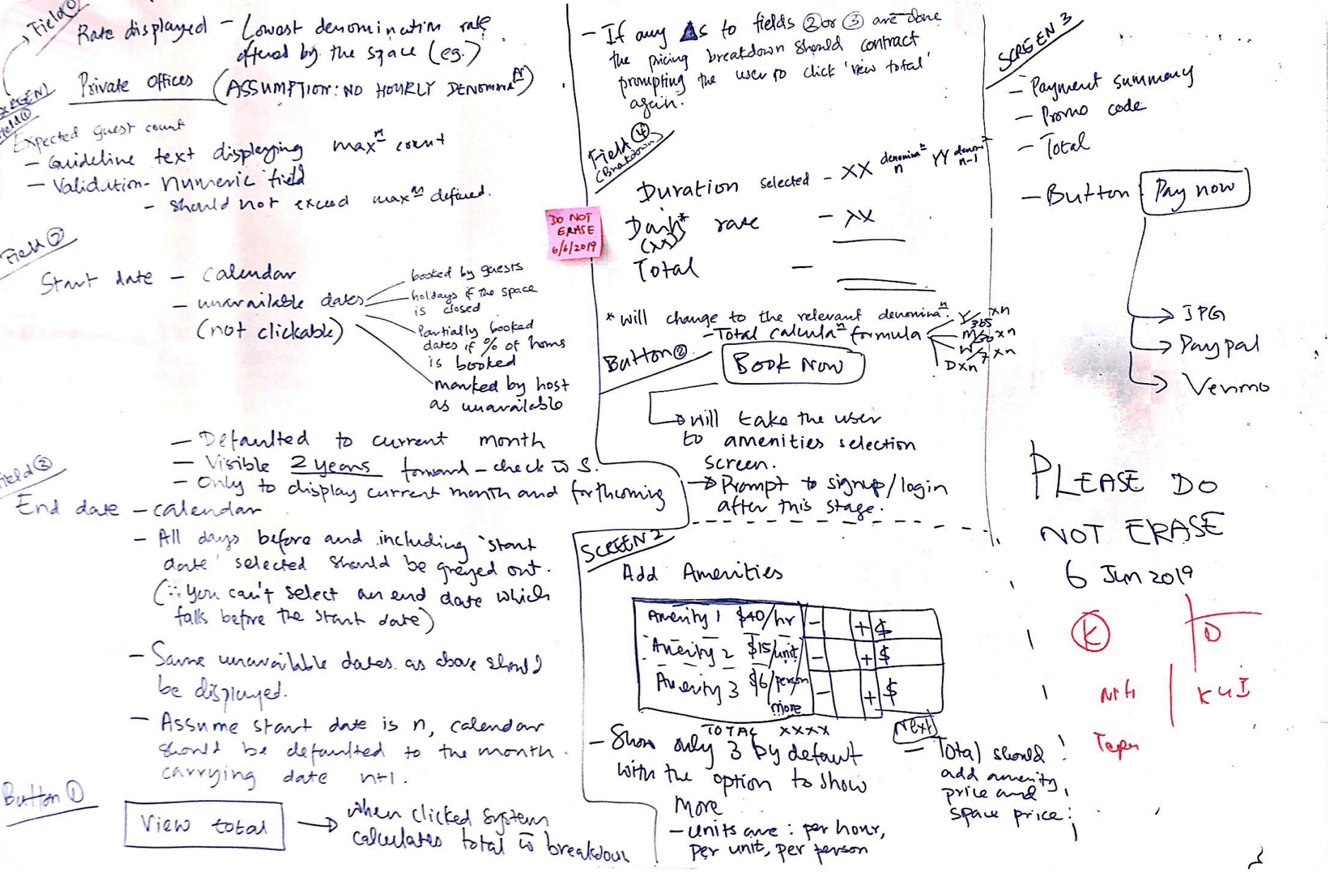 During a whiteboard ideation session with stakeholders from marketing, product, development, and leadership, we mapped out key features. Primary priorities included location, space type, and accurate visuals, while secondary needs focused on pricing, availability, lounge ratings, offers, and amenities insights that guided our feature planning.