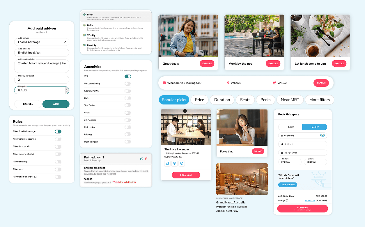 Users faced difficulties in discovering, comparing, and booking co-working spaces that met their preferences for amenities, location, pricing, and ambience. At the same time, space owners struggled with listing their spaces efficiently and managing calendar availability.